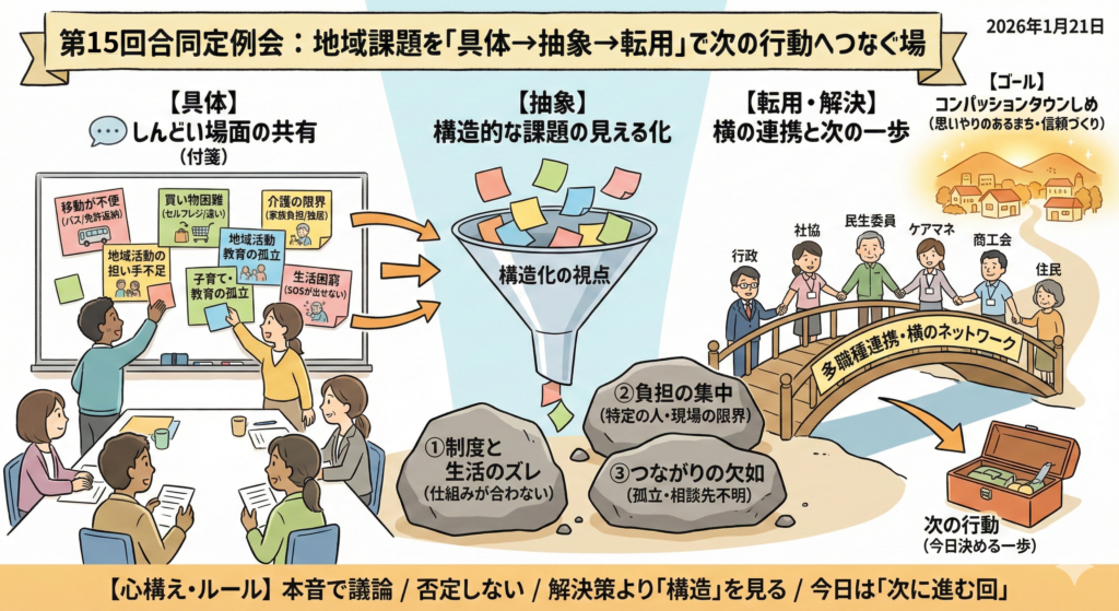 地域の課題解決には、人を責めるのではなく、仕組みを見直す視点が欠かせません。 構造を共有することで、初めて持続可能な支え合いが可能になります。
