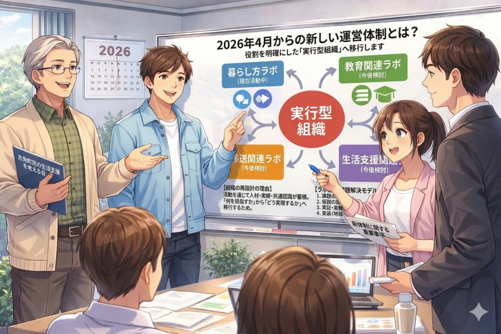 これまでの「話し合い中心の場」から、実際に地域を動かしていく組織へと進化します。