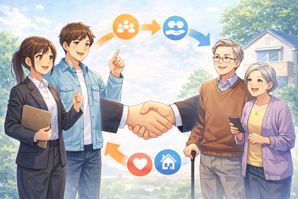 これからの地域づくりは、互助(助け合い)だけではなく「商助(商いの力)」が不可欠になります。